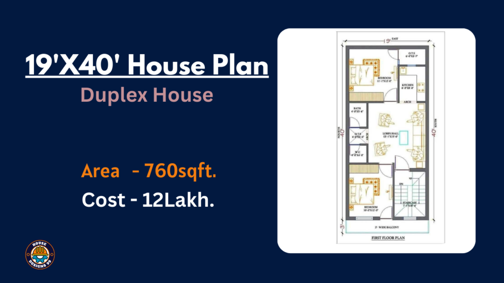 Here’s a basic idea for a West facing 19×40 (760 sqft) 2 BHK house plan. The layout can be customised based on your needs and preferences: